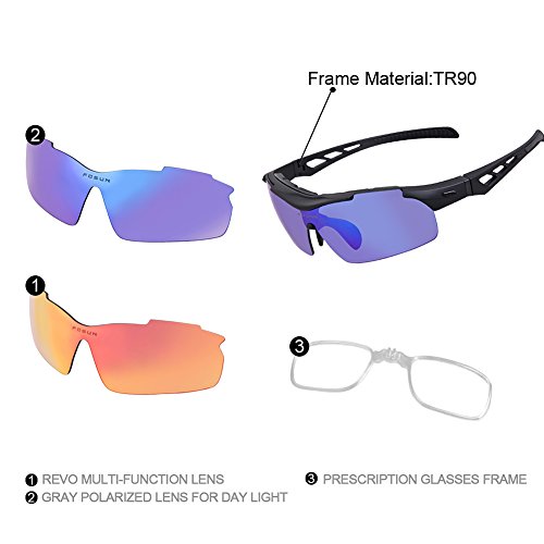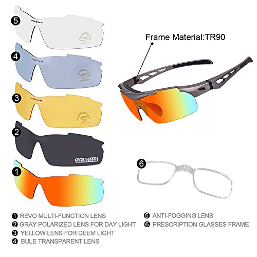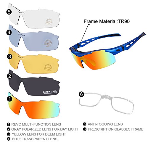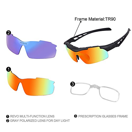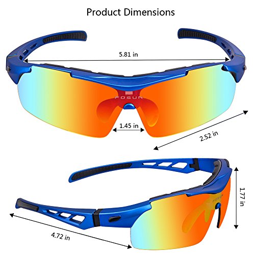 Studio : FOSUN Publisher : FOSUN Product Description What is POLARIZED LENS? Polarizing lens principle: effectively exclude and filter out the scattered light in the beam. So that the light can be on the track of the optical axis into the eye visual image, so clear and natural vision and can protect the eyes from UV damage.Restore true color, eliminate reflected light and scattered light and protect eyes perfectly. About TR90 material Extremely Light Unbreakable,The frame is made of TR90, a polymer material with a memory that is extremely light and super flexible,with highest quality TR90 materials which is ultra lightweight and anti-shock. We tested a lot of material and finally decided to use TR90 as our sunglasses frame. The benefits of AOKNES sunglasses 1: We use the best quality materials as our raw materials,Designed to meet the European and American people,Safe and fashion. 2: Different from other sunglasses plastic lenses,Our lenses are polarized lenses,They provide protection against the sun's harmful rays, effectively protect our eyes in outdoor activities,can be highly useful for sports, driving, and fishing by helping the participant in these activities to see more clearly. 3: We promise 12-month Warranty on Frame Lens and 45 Day Money Back Guarantee, You have no risk to try. How should I care for sunglasses? 1.Better not clean sunglasses with paper towel or cloth, which can grind dust and fibers into lenses and leave scratches. 2.Avoid using household detergents or soaps. While a few mild soaps don't harm lenses, today's extra strength soaps are powerful enough to slowly disintegrate lens coatings. 3.Be careful of the seawater corrosionand avoid consistent hyperthermal exposure under the car windshield. Package Included 1 * Sports Sunglasses 1 * Glasses bag 1 * Glasses cloth 1 * Polarization test card 1 * EVA glasses case 5 * Interchangeable lens 0