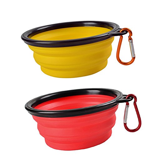 Package includes two pcs of pet travel bowl, two metal carabiners