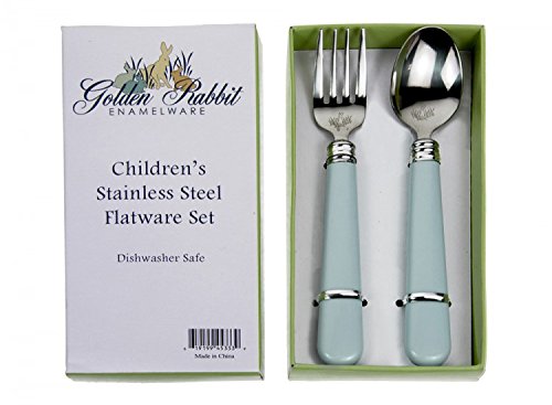 Golden Rabbit Enamelware Robin Egg Baby Toddler Kid Flatware Set