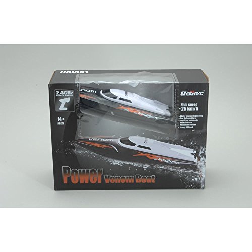 Studio : Ripmax Publisher : Ripmax Binding : Toy Product Description The UDI001 Power Venom Boat is UDI's first RC boat and they didn't disappoint. It features a tough moulded hull and deck with a design that suits both agility and an impressive top speed of 25kp/h! The boat comes ready to run and requires no assembly, it also includes a quality 2.4GHz radio, Li-Po battery and charger. The transmitter includes an audible telemetry warning that alerts you when the boat battery is running low on power, helping to avoid being stranded in the middle of the boat pond! 0