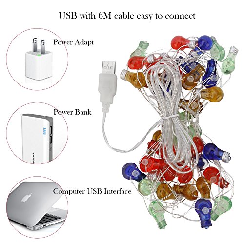 TEC.BEAN String Lights, 6m 20ft Long 40 LED Colorful Half-Ball Lights,Indoor/Outdoor Decorative Light, USB Powered,for Garden Party Xmas Tree Wedding (Warm White)