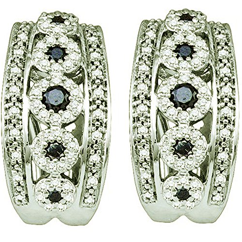 -. Title : 0.75 Carat (ctw) 10k White Gold Round White & Black Diamond Ladies Fashion Hoop Earrings