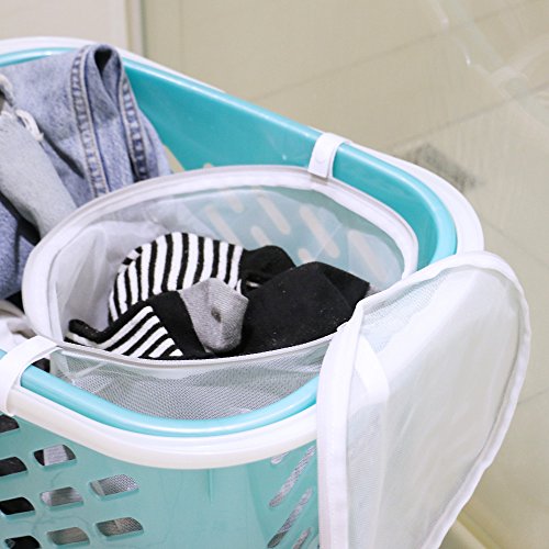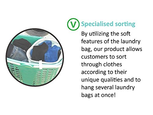 SORTING MASTER. With multiple mesh laundry bags hanging on the laundry basket, simply throw the clothes or lingerie into separate bags and it just sorted out. No more work before doing laundry.
