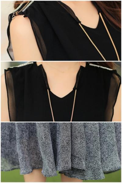 ふんわり軽やかVネック ノースリーブ シフォンドレス ミモレ丈ワンピース ドッキングワンピース