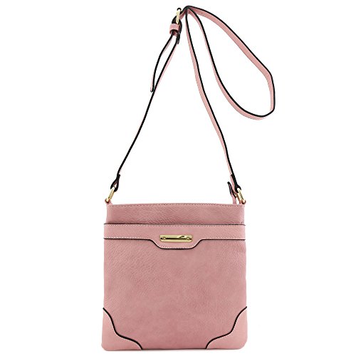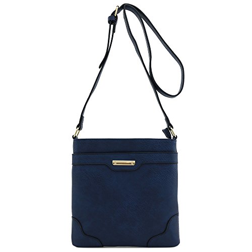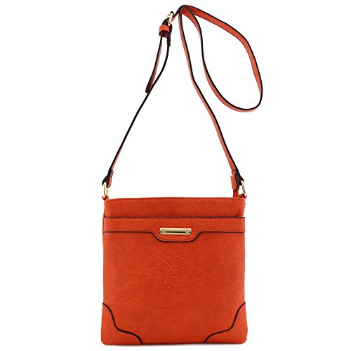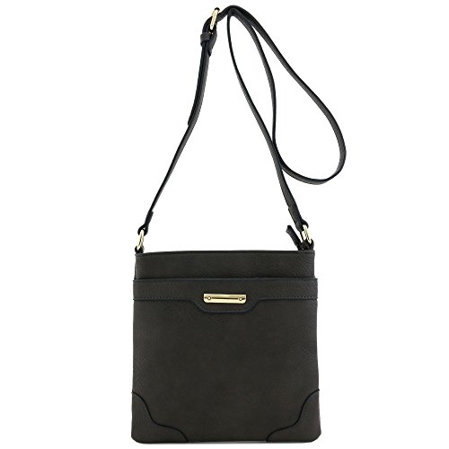 | Women's Medium Size Solid Modern Classic Crossbody Bag with Gold Plate |