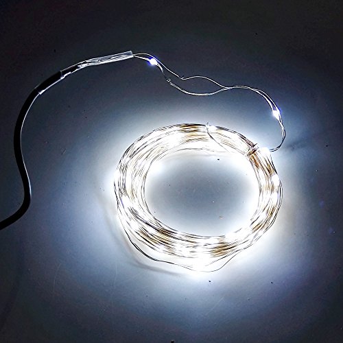 KINGLUX Decorative Indoor outdoor Christmas Party String Lights Starry lights flexible string Silver Wire Lights for Wedding Bedroom Holiday Pub Club,Time Setting Cool white 6000K 32.8FT/10M