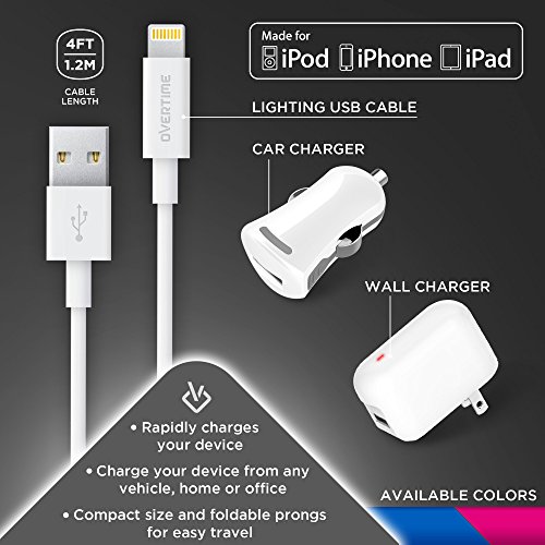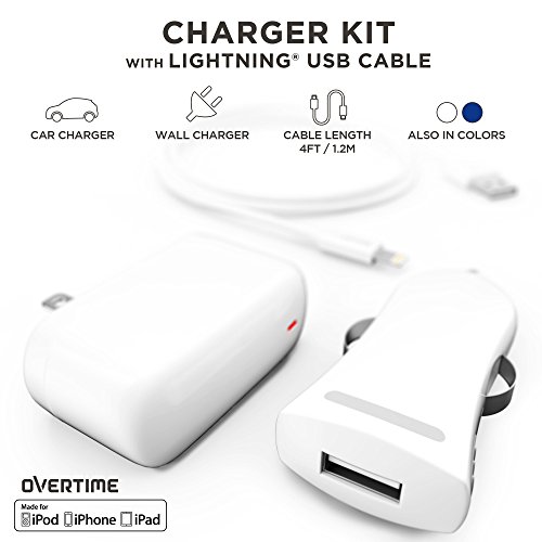 LIGHTNING FAST CHARGE: Features 2.4 Amps of power and a lightning cable with apple supplied connectors that quickly charges your smart devices and keeps your gadgets functioning at optimum performance. Kit includes wall charger and portable car charger.