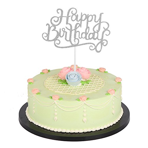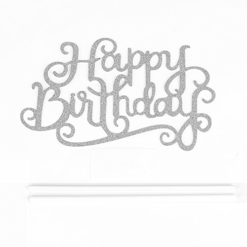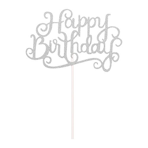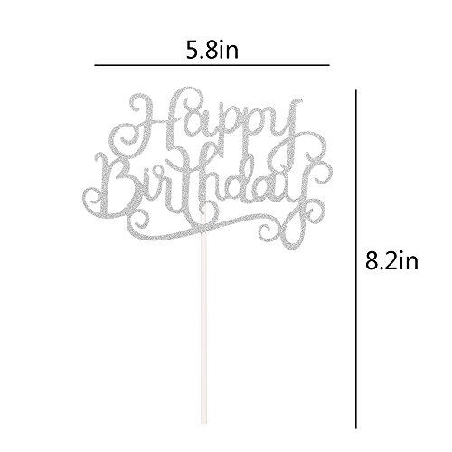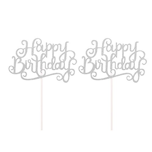LXZS-BH 2 Pack Silver Glitter Happy Birthday Cake Toppers,Birthday Party Decorations