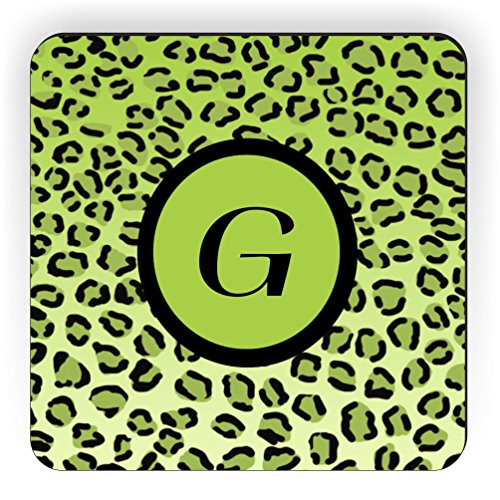 Rikki Knight Letter "G" Initial Lime Green Leopard Print Monogrammed Design Square Fridge Magnet