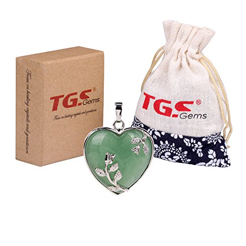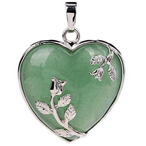 TGS Gems Vogue Green Aventurine Tumbled Chakra Gemstone Cover Alloy Heart-Shaped With Flower Edge Pendant