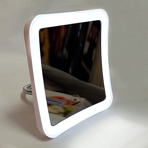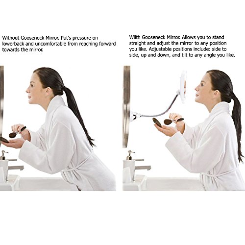 SunplusTrade Led Magnifying Makeup Mirror Lighted Vanity Bathroom Square Mirror With 360 Degree Swivel Rotation, Flexible Gooseneck, And Locking Suction