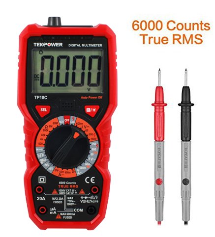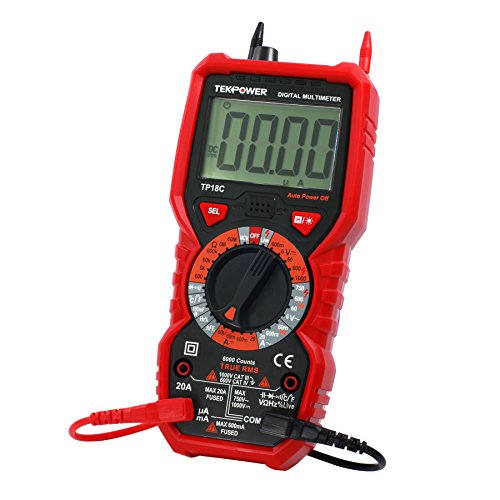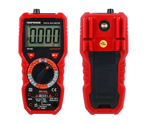 Tekpower TP18C General Purpose Manual-ranging True RMS AC/DC 20A Digital Multimeter with Non-contact Voltage Detector (NCV), Live Wire Tester & Flashlight