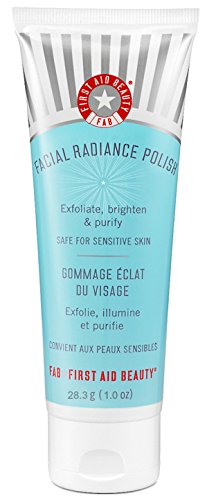 -. Feature : Brand: First Aid Beauty Fab / First Aid Beauty Fab Facial Radiance Polish Travel Size (28.3/1.0oz) / A gentle daily exfoliating and brightening cleansing polish that cleanses the skin, leaving it clear, soft, and renewed. / Facial Radiance Polish uses natural, biodegradable exfoliants-including shea nut shell powder and willow bark extract-to gently buff and polish skin to reveal a smoother, brighter, more even-looking complexion. / This product is cruelty-free.