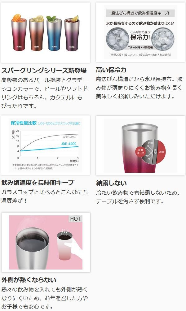 | 飲み頃温度を長時間キープすることで人気の真空断熱タンブラーにスパークリングシリーズが登場!!高級感のあるパール塗装とグラデーションカラーで、ビールやソフトドリンクはもちろん、カクテルにもピッタリです。大切な人への贈り物や、普段の食卓やホームパーティーを華やかに彩るアイテムとして是非ご活用ください。 |