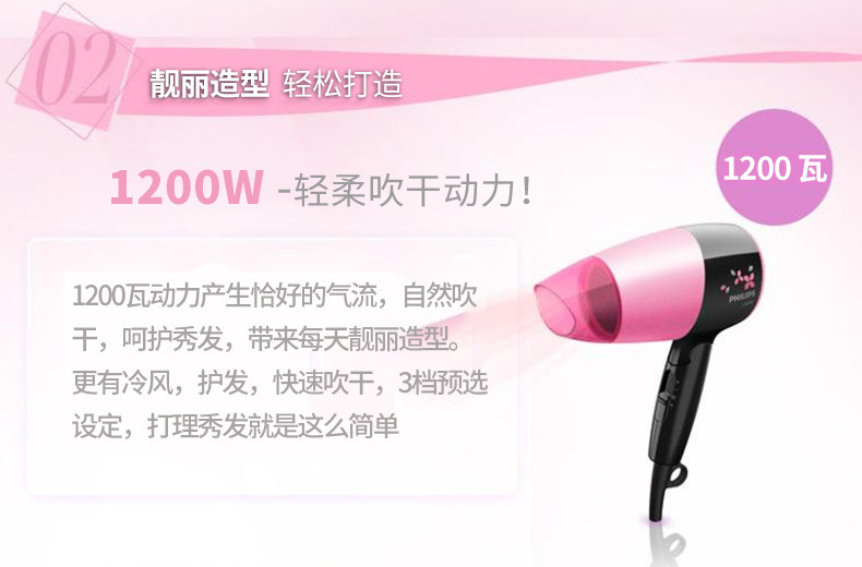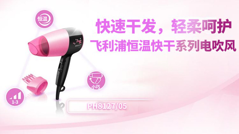 飞利浦HP8127吹风机家用学生宿舍小功率恒温护发冷热风电吹风筒