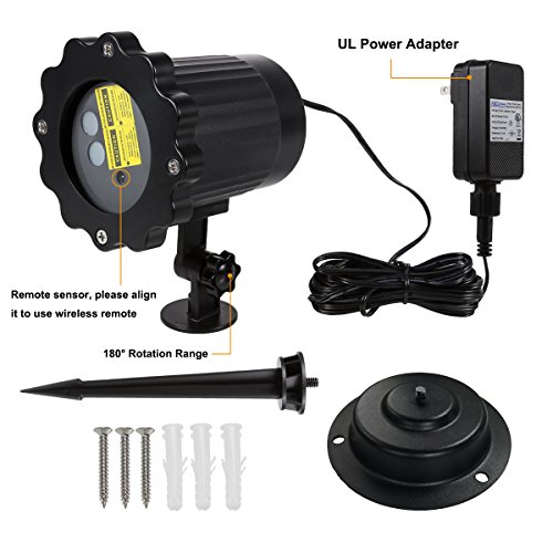 - 【Magical Laser Show】More than 2000 points creates a magical sparkling firefly effect in your trees or front house. (16ft to 49ft is the best projector distance, the more closer the laser light and object, the more brighter the light performance).