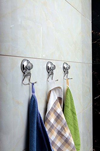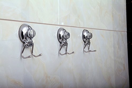 Strong Suction Cup Double Hook, Wall Mount Bathroom and Kitchen Accessories Hanger for Bath robe, Towel, Coat, Loofah - Stainless Steel