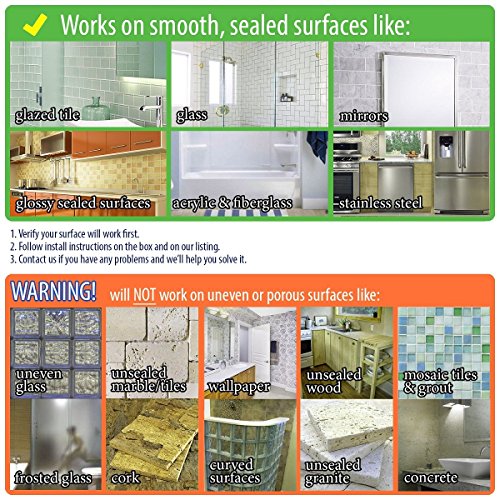 ATTENTION: Only Fit for any NON-POROUS & SMOOTH surface. Will not adhere to unfinished marble, porous or rough surfaces, or across grout lines.