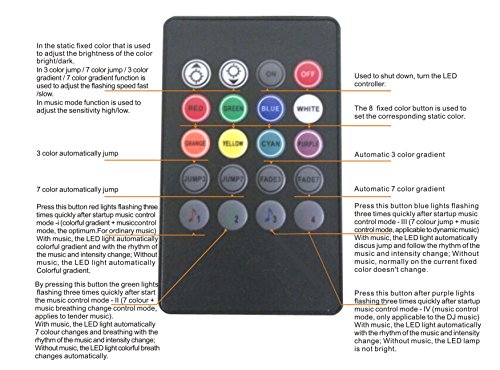 This Music controller led light can Jump or Fade according to different musical rhythms and beats, which including 4 Sound control modes: General Music, Soft Music, Pop Music, DJ Mixes.