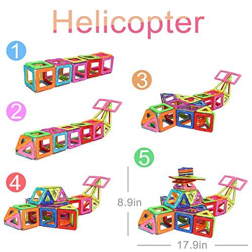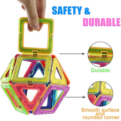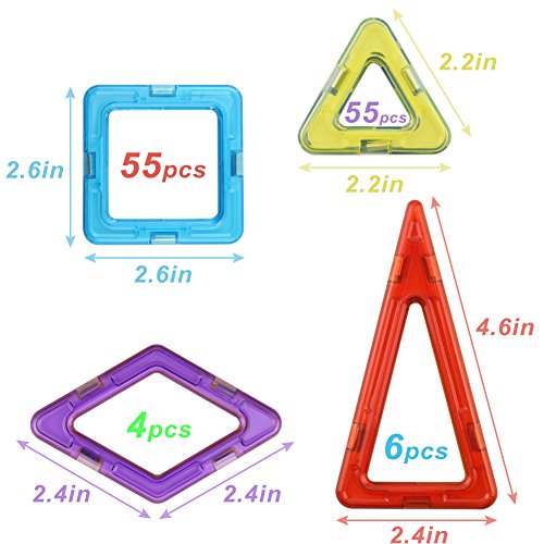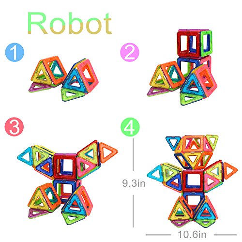 -. Feature : From Robot to Dinosaur, from easiest to hardest, there are more than 1000 ways to build with this magnetic blocks. Instructions of 12 structures from small to big included / This deluxe block set includes 120 pieces magnetic blocks dye bright red, pink, blue, yellow, green and purple. A versatile variety of shapes are included: 55 triangles, 55 squares, 6 long triangles, 4 rhombuses. / Compatible with Magformers. A set of magnetic blocks provides an opportunity for a child to pass the hours constructing towers, castles, animal, robot and more! / Smooth surface and rounded corners of each tile are designed to be safe for kids and all tiles are made of high quality environment-friendly plastic. / Great for 3 and up. Playable by one or group. Great way to spend time with the kids and loved ones.