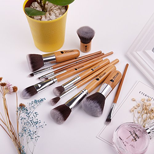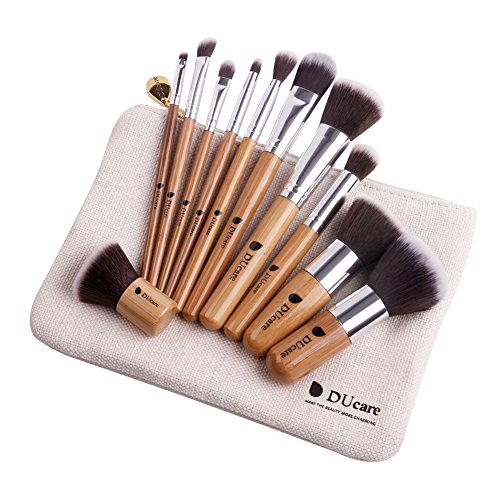 DUcare 11Pcs Makeup Brush Set Professional Bamboo Handle Synthetic With Bag