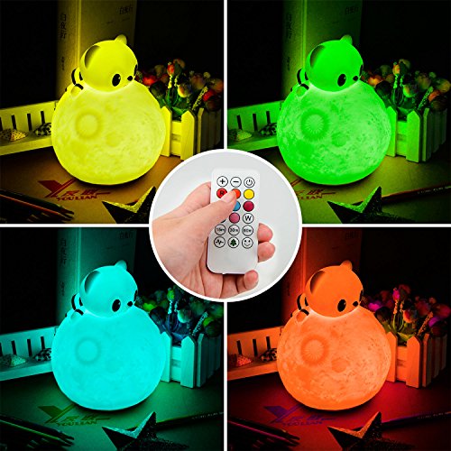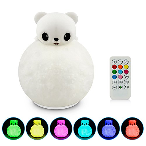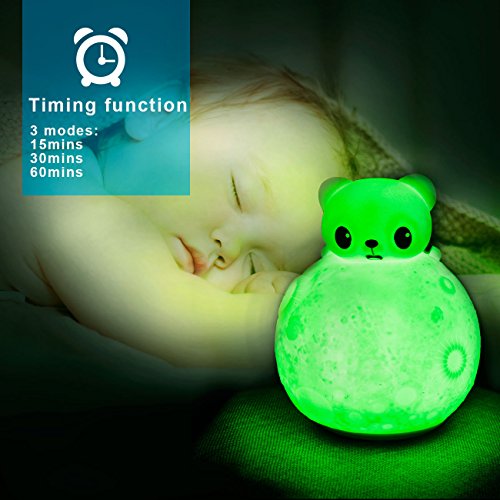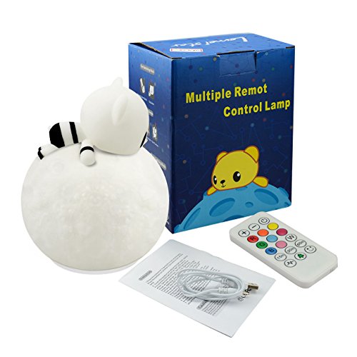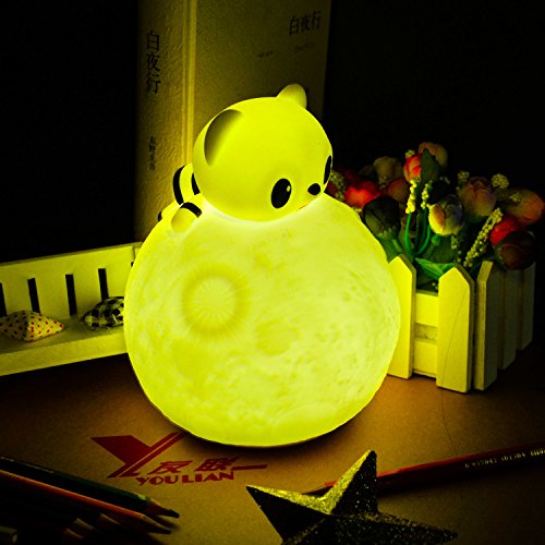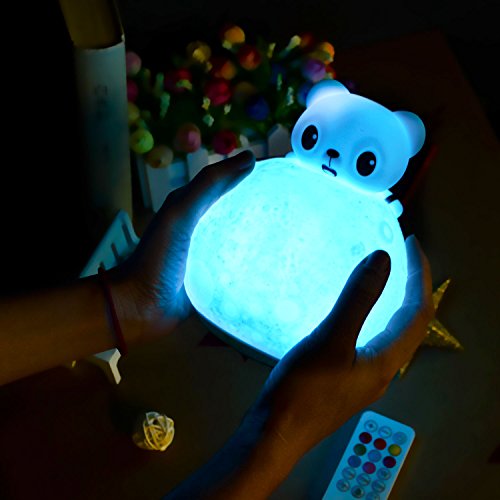 - 【9 Colors Light and 4 Modes Lights】- The cute moon bear night lamp has 9 colors--Red, Orange, Yellow, Green, Light Blue, Purple, Dark Blue, Pink and White, can be fix on the color you like. Have 4 Modes: fixed color mode, holiday lamp mode, breathing light mode and nursery mode.