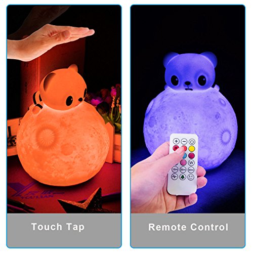 Winkeyes Silicone Night Light, RGB Touch Tap+ Remote Control LED Baby Night Lights Cute Moon Bear Night Lamp, Timing Off, Nursery Baby Dimmable Night Lamp for Bedroom, Children Kids Christmas Gifts