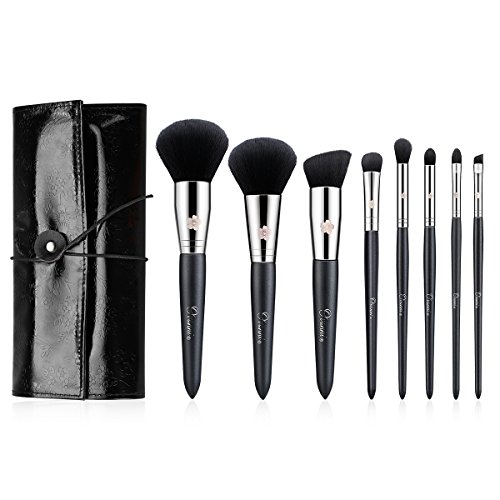 Ovonni 8 Piece Makeup Brush Set with Storage Bag, Cosmetic Blender Kit for Foundation Powder Blush Bronzer Eyeshadow Lipstick with Ultra-Soft Microfiber Bristles, Black