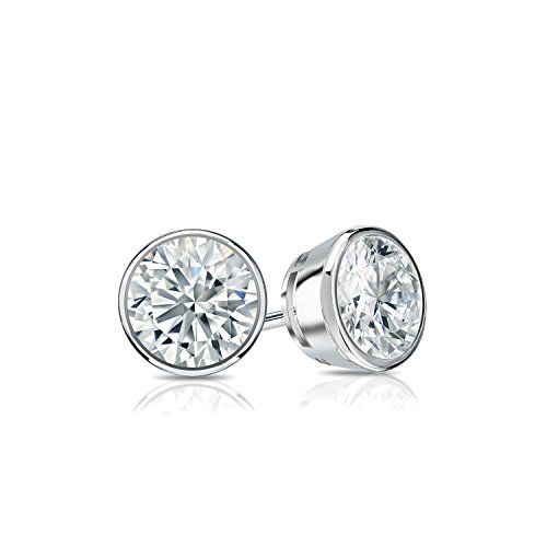 Women simulated diamond cz earrring in gold. These brilliantly cut CZ stud earrings are secured with screw-back. The simulated diamonds are professionally set into 14K White Gold with Bezel setting