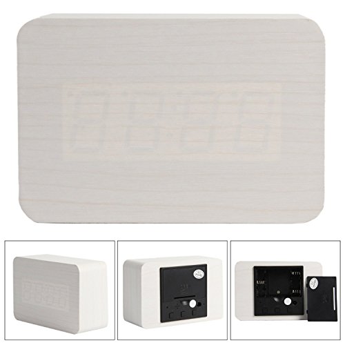 Teika Digital LED Wooden Clock Wood Alarm Clock Compact Mini Displaying Time Date Temperature Voice Touch Activated for Desktop Home Office Pack of 1 (White)