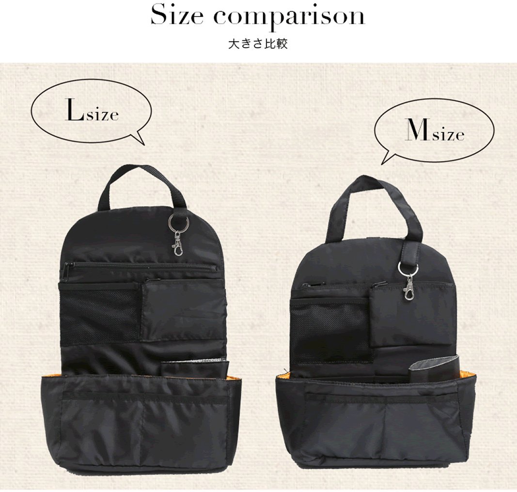 L size functionality Large sized back pockets are attached to the L size backpack inner bag so that you can organize the inside of the backpack with lots of luggage bigger and bigger, with A4 size documents, clothes and towels etc. more