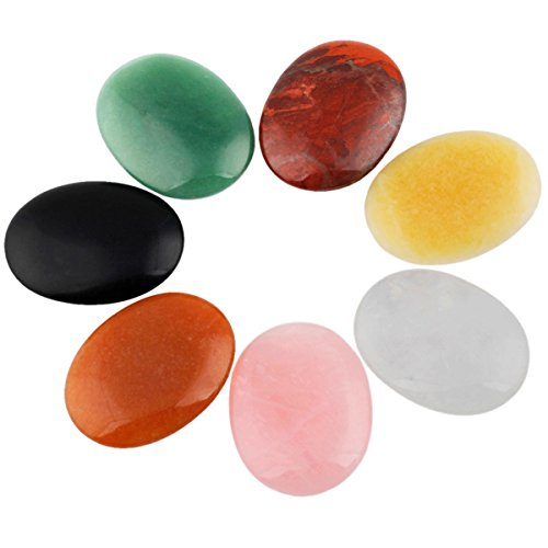 rockcloud Oval Worry Stones,Palm Pocket Stone,Healing Crystal Chakra Therapy Geometry,Assorted Stones,Pack of 7