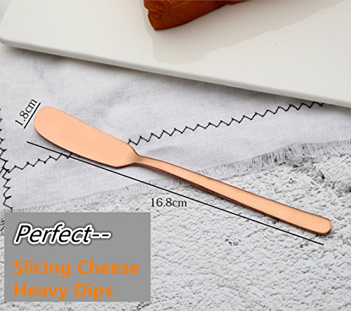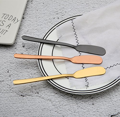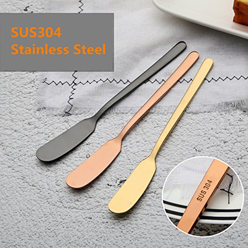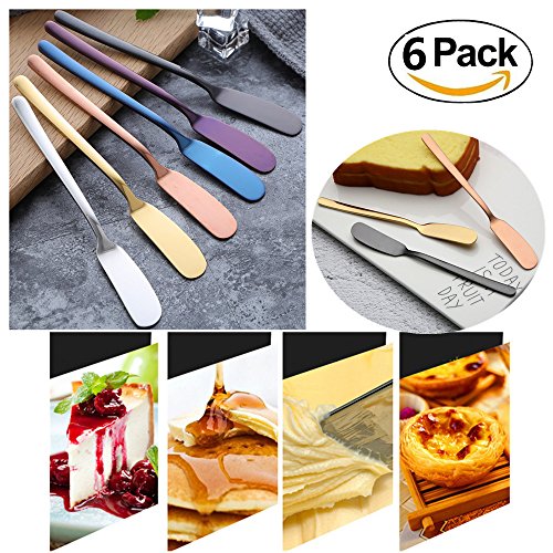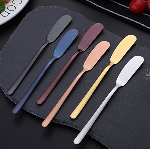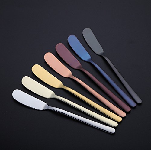 ?Specification Material: Food grade 304 stainless steel Size: 6.61" x 0.71" Color: 6 type---Blue ? titanium color rose gold tungsten color magic color primary color ?Advantages Made of premium Food grade 304 stainless steel. Handles feature rounded sides, slender necks, and gentle flares, capped by slight facets at the tips. Works great for spreading your butter on your piece of morning toast, party platters, mustard, jams and much more. The butter spreader can easily be cleaned after use by hand washing or being placed in the dishwasher. ?Package Include 6 x Butter Spreader 0 |
