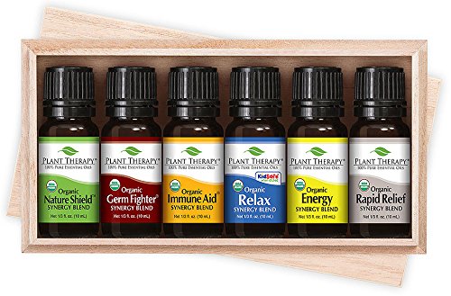 Studio : Plant Therapy Publisher : Plant Therapy Binding : Health and Beauty Product Description PLANT THERAPY ORGANIC SYNERGIES SET Formulated by our Certified Aromatherapists and Robert Tisserand, Plant Therapy only uses 100% pure, undiluted Organic essential oils that create powerful therapeutic synergies. The Organic Synergies Set contains 10 ml each of Organic Nature Shield, Organic Relax, Organic Rapid Relief, Organic Germ Fighter, Organic Immune Aid, and Organic Energy, and comes in a wooden box that is perfectly packaged and ready to go. ENJOY THESE INCREDIBLE ORGANIC SYNERGIES Each of these remarkable synergies have incredible therapeutic properties. Easy to use, and beneficial to your overall well being, the Organic Synergies Set is a must have. Whether you are looking for a synergy that will support a healthy immune system, help you unwind after a chaotic day, or give you the energy you need throughout the day, this set is the perfect one for you. AFFORDABLE, HIGH-QUALITY ESSENTIAL OILS Our goal at Plant Therapy is to positively impact the lives of as many people as humanly possible. By selling such a high quality product at an affordable price, we not only positively affect the lives of our customers, it also gives us the financial means by which we can help those who are less fortunate to live a happier, healthier, and more productive life. 0