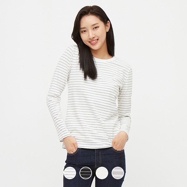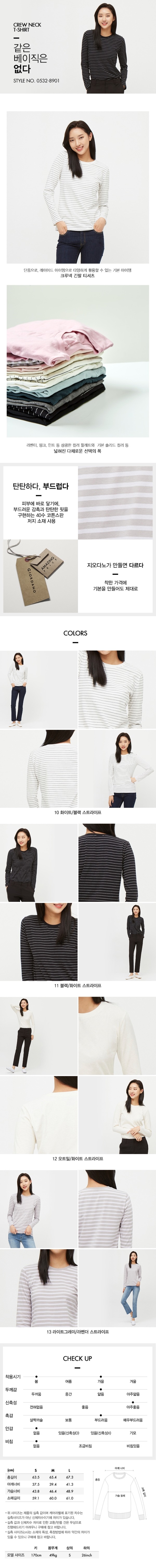 여성 긴팔 기본 라운드 티셔츠 입니다.촉감이 부드러우며 가볍게 착용할 수 있는 아이템 입니다.