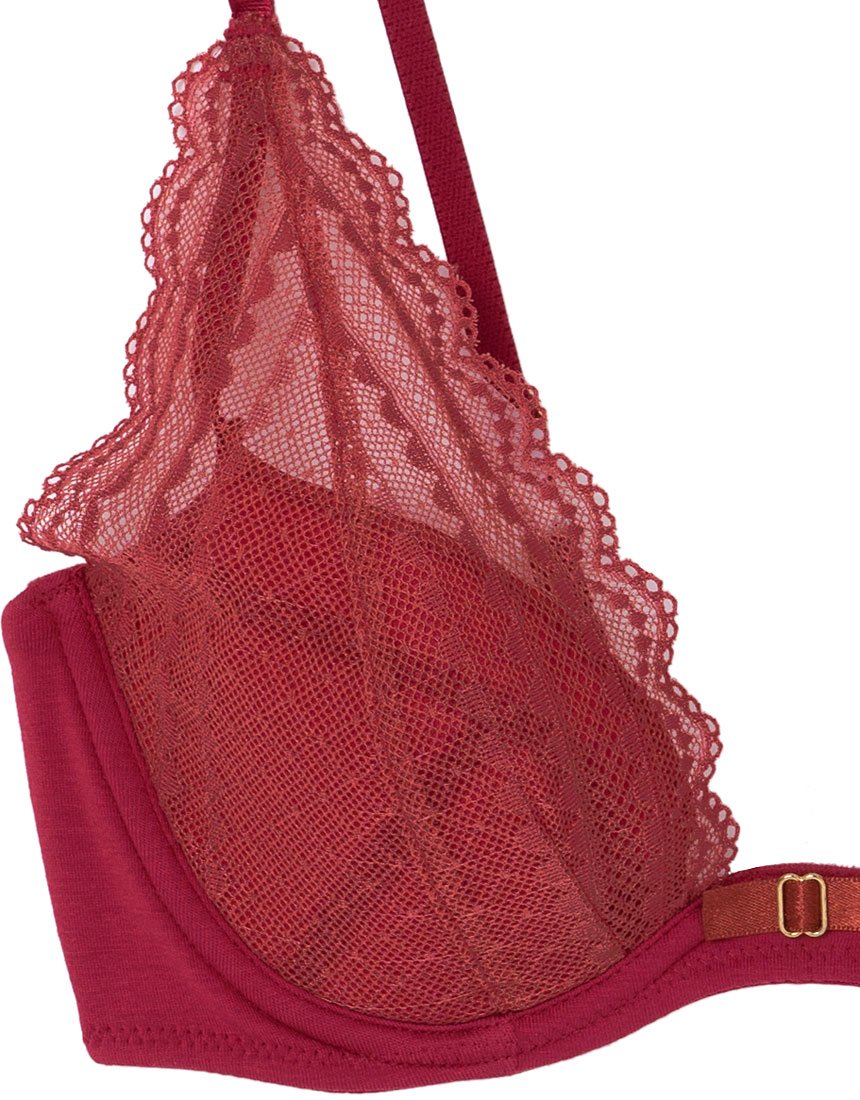 3/4 cup bra of full covered type of adult casual design, which is not feminine too much for petite dot pattern lace use.