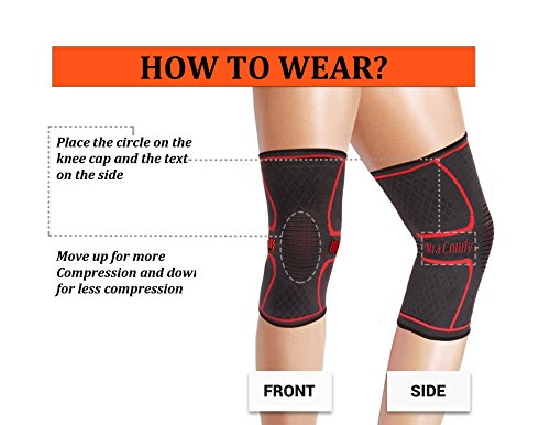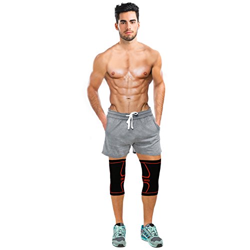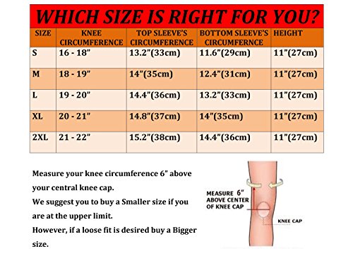 -. Feature : SUPER COMFORTABLE: You will not find any other knee sleeves as comfortable as this one, feels like It is a part of your body. It also comes in a pair for the P.R.Ice of one (unlike any other brand) / BENEFITS: Best Knee Pain Relief and protect your knees against injury caused by over exercise or any sports activities. It reduces inflammation/swelling, pain, recover faster from knee surgery, joint pain relief, tendonitis, cramps, helps with arthritis also stimulates blood flow and promotes muscular recovery. Your search for the best knee sleeve is finally over! / PERFECT USE: for everyday use also for athletes and professionals men and women. A must for those who love health or fitness to brace their knees, or anyone who has knee problems. Our knee sleeves are extremely comfortable and can be worn everyday to help you get the support you need! It's also a must have for those who use their knees a lot and Intensive activity such as Running, Basketball, Tennis, Golf, Baseball, Football, Weightlifting, Gym Fitness Training, Cycling, Squatting and more / PREMIUM QUALITY: Made of the highest grade 3D Circular Knitting technology delivers 360 degree stretch for greater flexibility plus Premium Performance Fabric unsurpassed strength and durability. Equipped with double silicone anti slip wave. / BUY IT NOW AND FEEL THE DIFFERENCE INSTANTLY! 100% SATISFACTION GUARANTEE: Your satisfaction is our guarantee! We Promise These Are The Most Perfect Fitting, Remarkable Knee Support, Highest Pain Relieving and Durable Compression Knee Sleeves You Will Ever Own! ATTENTION: Please Measure Your Leg for the Correct Fit and please refer to the Size Chart for guidance.