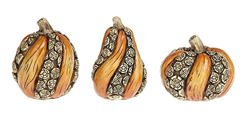 Set of 3 Polystone 3 Inch Tabletop Pumpkin Stump Figurines