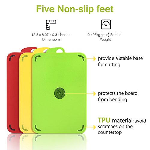 Plastics Cutting Boards Sets of 3:Red for Raw Meat , Yellow for Fruit , Green for Vegetables Designed ,Which Prevents From Cross-Contamination of Different Food Types
