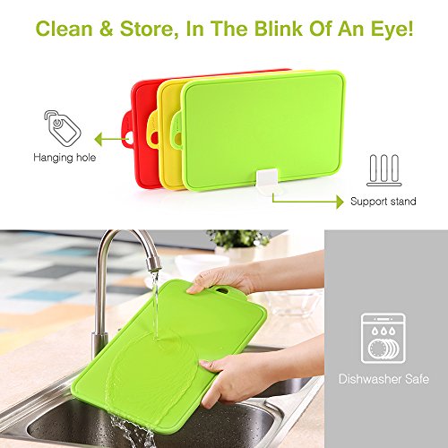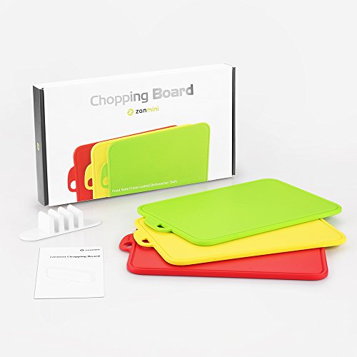Zanmini Kitchen Cutting Board Sets of 3 Piece, Dishwasher Safe with Support Stand and Handing Hole Boards - BPA Free FDA Approved & Eco Friendly