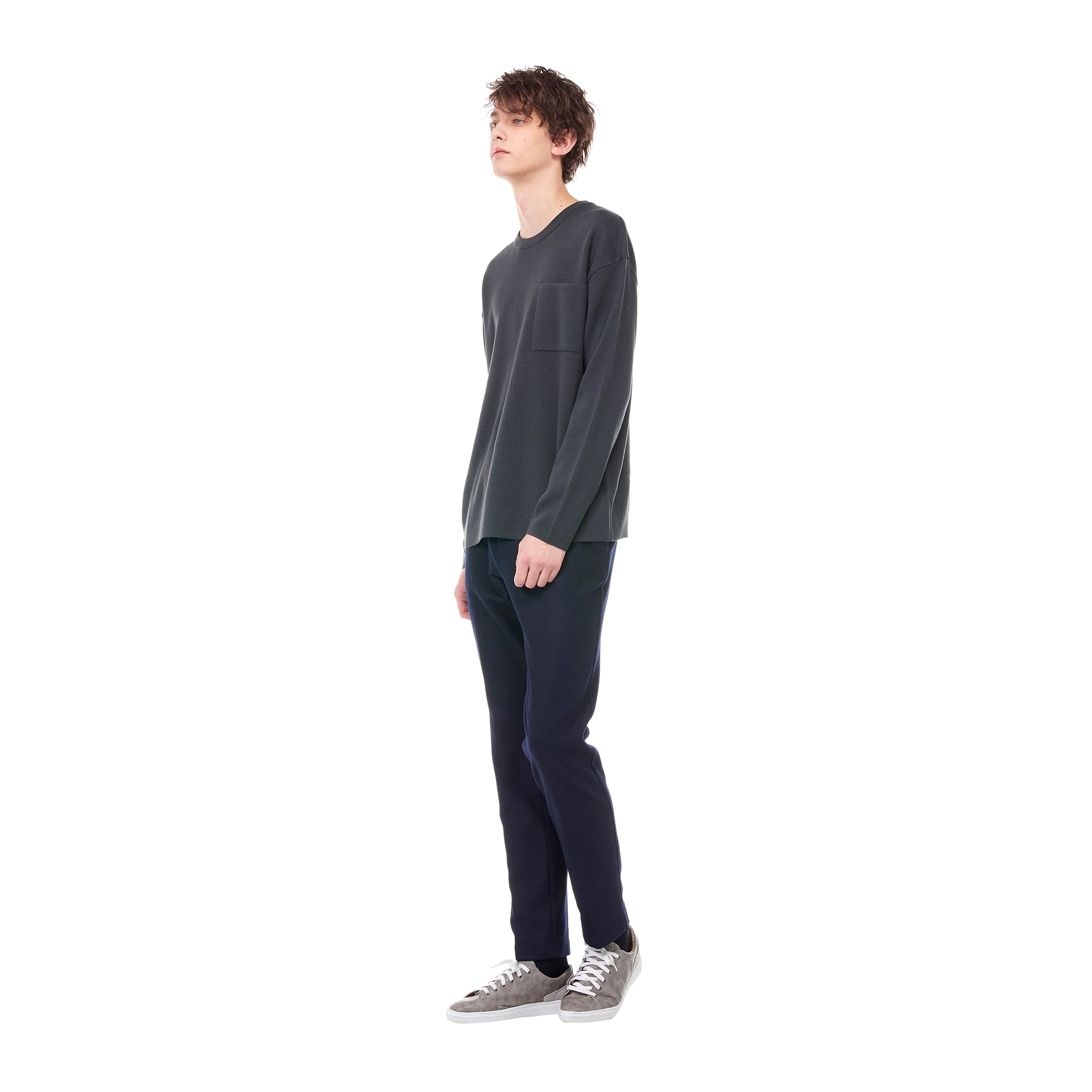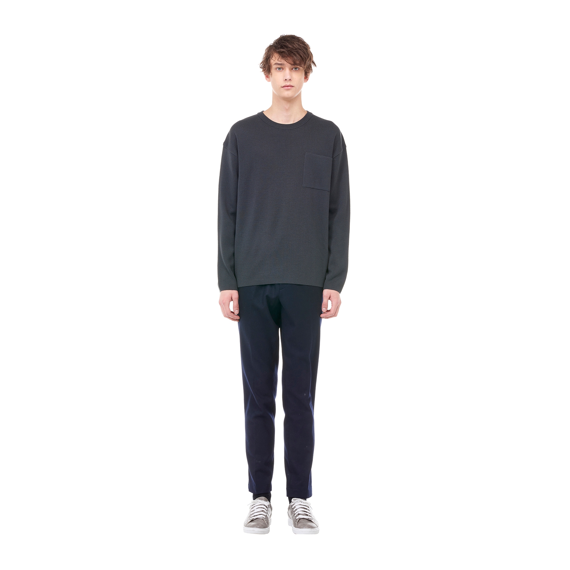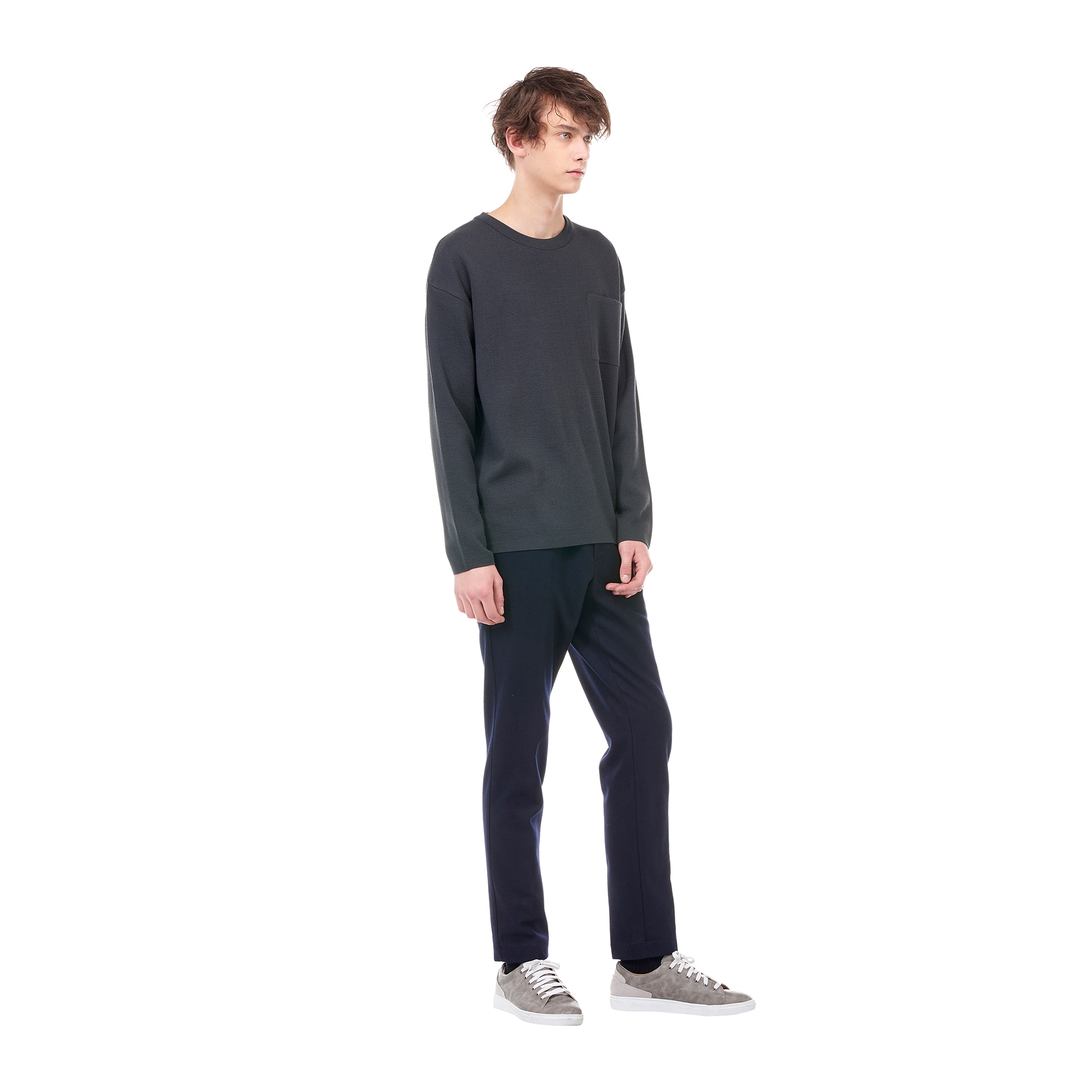 컬렉션 : 2017 Fall/Winter 디자인 포인트 : - 원 패치 포켓 디테일이 돋보이는 카키 컬러 니트- 드롭 숄더 디테일로 포인트를 준 디자인- 베이직한 라운드넥 디테일을 가진 활용도 높은 데일리 아이템 스타일링 추천 : 베이직한 울 팬츠 혹은 치노 팬츠 등의 아이템과 코트를 매치하여 겨울철 심플한 데일리룩 스타일링을 연출 할 수 있음