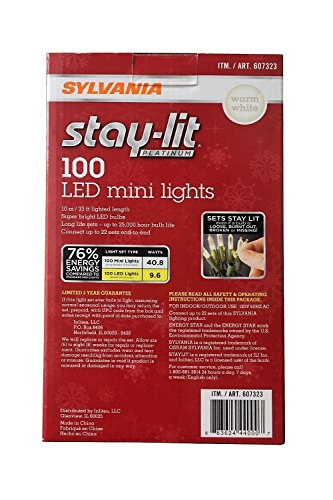 Sylvania Stay-Lit Platinum LED Indoor/Outdoor Christmas String Lights (Various Colors & Sizes) (100ct mini lights, Warm White)