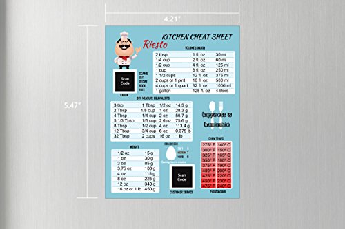 All your measurement conversions - right at eye level - on the refrigerator Whether you bake/cook all the time or do it only when "forced" to, this is such a great measurement and conversion aid.