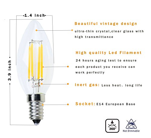 - Lamsky C35 E14 Base LED filament bulb (4-Pack,Warm White)