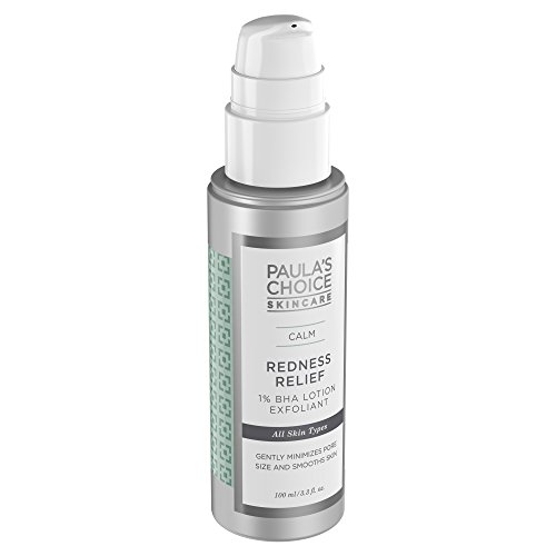 CALM Redness Relief 1% BHA Lotion Exfoliant is a leave-on, sheer lightweight lotion with a texture that works to soothe redness and smooth away dry skin with skin-plumping hydration. It also diminishes the appearance of wrinkles and lessens the size of pores. Contains amazingly effective, but gentle, salicylic acid (BHA) to naturally exfoliate built-up layers of dead skin to reveal beautifully radiant skin hidden beneath. Skin-soothing plant extracts ease extra-sensitive, red skin for a more unified, healthier-looking appearance. This exfoliant has an optimal pH range of 3.2-3.8. It gently exfoliates skin's surface as well as inside the pores to enhance skin renewal, while hydrating and soothing ingredients promote visibly calm, even-toned skin. Helps unclog and refine the look of enlarged pores and diminishes the appearance of wrinkles. All Paula's Choice products are 100% fragrance free, non-irritating, and never tested on animals.Feature