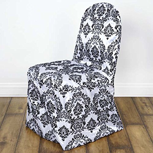 -. Binding : Kitchen -. Brand : Efavormart -. Color : Black -. Feature : FREE SHIPPING on order over $30 (USA 48 states only),can combine any items from Efavormart / How to Care: Dry Clean only. Material: Taffeta & Velvet Approximate Measurements: Top to Bottom: 38" Chair Back: 17" wide x 22" tall Chair Seat: 18" wide x 19" length Chair Leg: 18" tall from ground Returns will only be accepted in BRAND NEW CONDITION. Any sign of use, we will not be able to refund the item. Note - High quality fabric used for this item. Weight on this is extremely heavy. / Brand New Condition -. PackageQuantity : 1 -. ProductGroup : Home -. ProductTypeName : HOME -. Title : Efavormart Black Damask Flocking Banquet Chair Covers--PACK OF 5