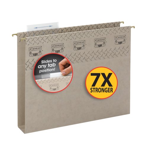 -. Title : Smead TUFF Hanging Box Bottom Folder with Easy Slide Tab, 2" Expansion, 1/3-Cut Sliding Tab, Letter Size, Steel Gray, 18 Per Box (64240)