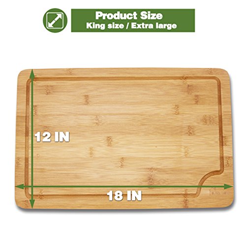 Extra Large Bamboo Cutting Board, Natural Bamboo 100%Organic Anti-Bacterial Lightweight Durable with Deep Drip Groove; [18x12x0.75 -Inch] Thick Strong Bamboo Chopping Board