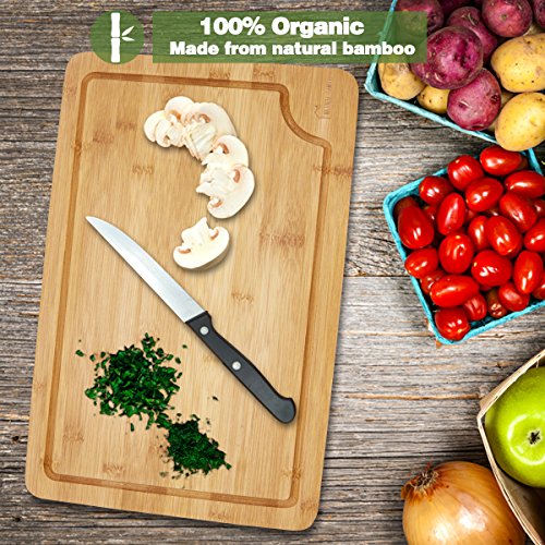 100% ORGANIC - Our eco-friendly cutting board is dye and formaldehyde free, and is made from 100% organic bamboo which naturally resists bacteria.