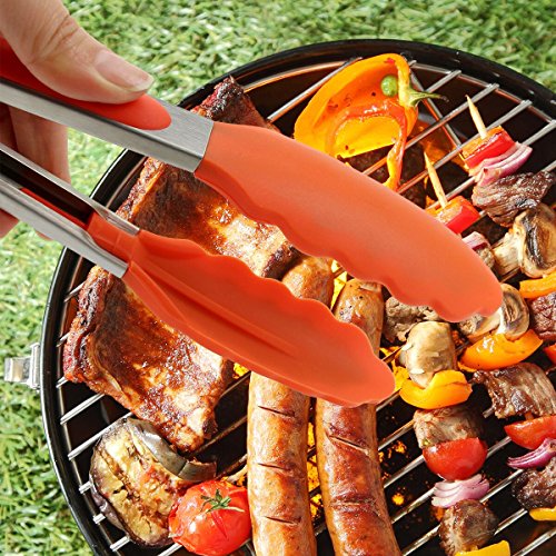 - TOP QUALITY - Our kitchen tongs are made of strong and durable stainless steel coated with 100% FDA food grade silicone that is BPA free. Heat resistant up to 480° Fahrenheit and safe to use on all cookware without scratching.